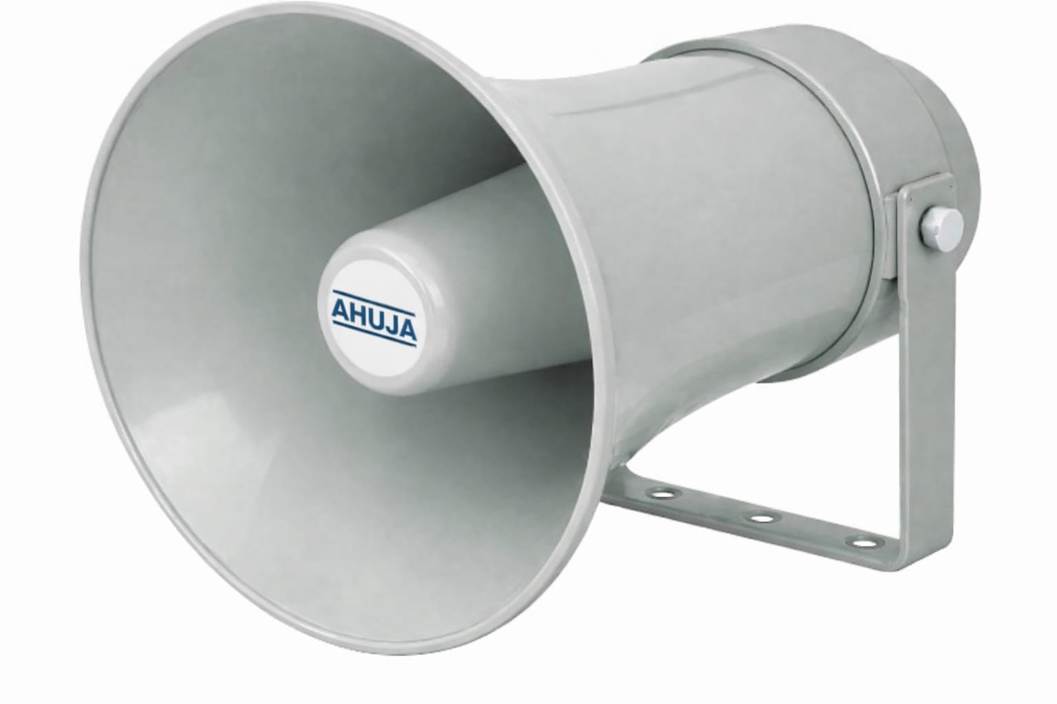 - Ahuja high quality, weather proof horn speakers are compact, light weight and rugged. They are moulded in tough UV protected ABS plastic for longer lasting finish.