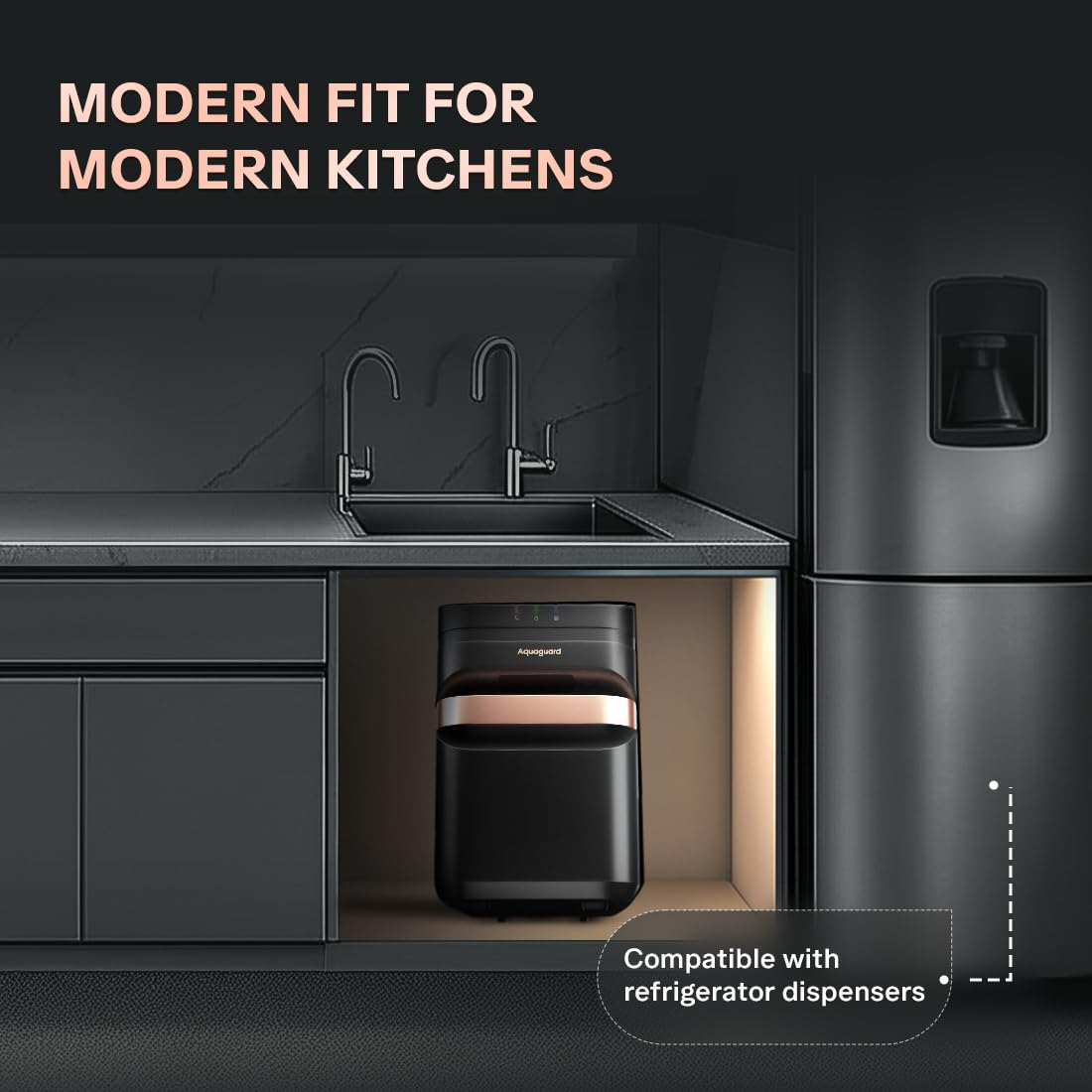 - Under the Counter Water Purifier (UTC) – Designo is an under-the-counter purifier (installed below your kitchen counter) that comes with a single-unit design, unlike other models that have two separate units.
