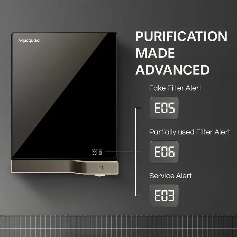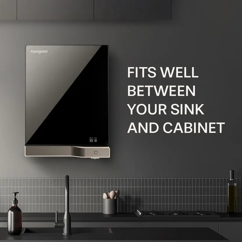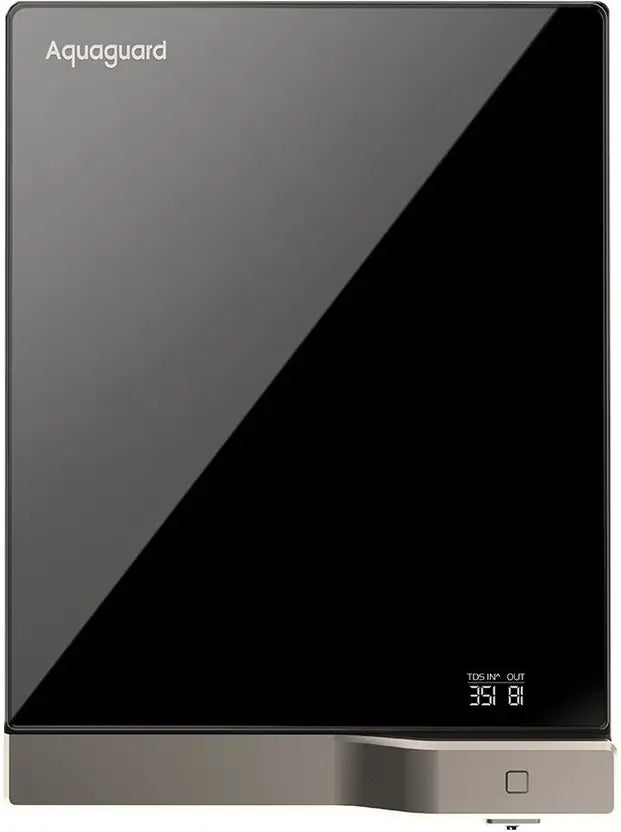 Aquaguard Slim Glass 3.6 L RO + UV + Copper Water Purifier Black and Gold. Aquaguard Water Purifier, designed with advanced technology to ensure every drop of water is safe, pure, and refreshing. Trusted by millions, Aquaguard offers the perfect blend of innovation, style, and performance, making it a must-have for every home. aquaguard water purifier RO+UV+UF water purifier aquaguard mineral water purifier