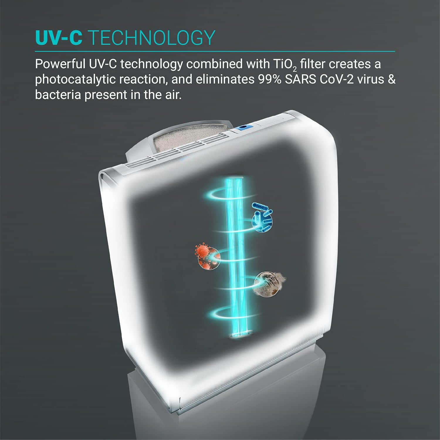 - Dr. Aeroguard uses UV-C Technology and helps eliminate 99.99% Viruses and Bacteria.
