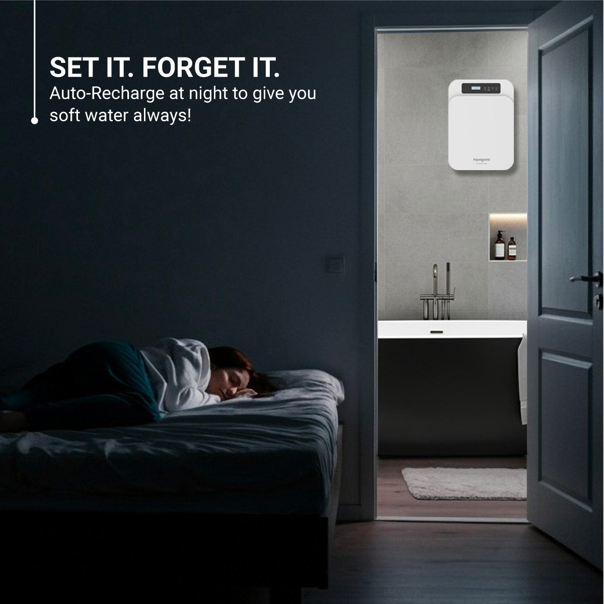 Made to soften water for bathrooms, washing machines, and dishwashers, the Aquaguard AWS C-500 helps reduce hard water problems that may lead to hair fall, dry skin, and stains on bathroom fittings. It ensures soft water flows consistently, offering a better bathing experience while protecting appliances and surfaces in your home.