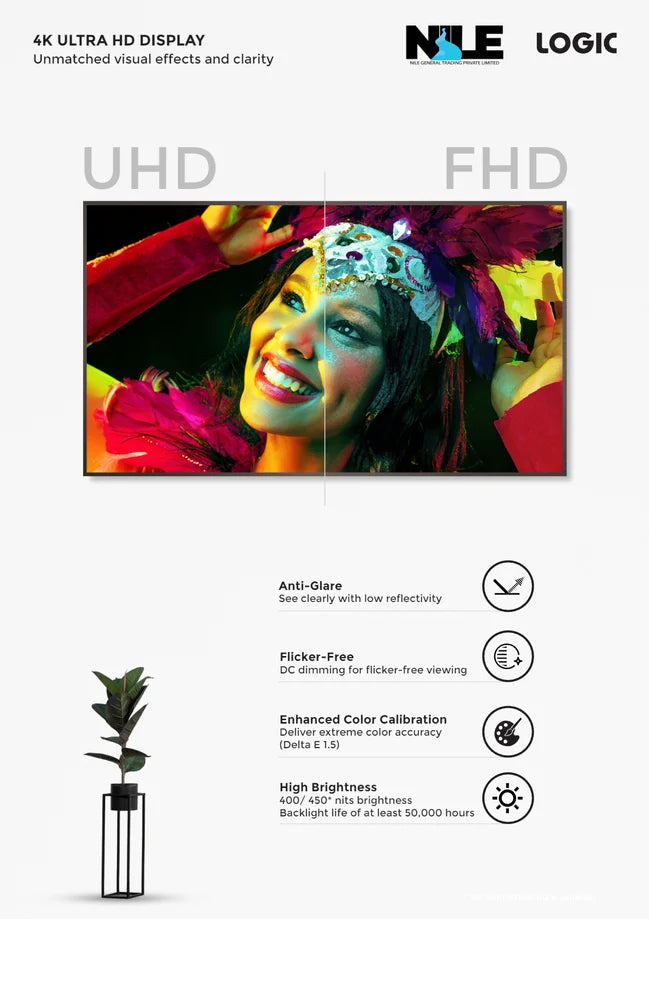 The Logic LV-55UC is a 55-inch professional display designed to deliver high-quality visuals and versatile functionality for various professional settings.
