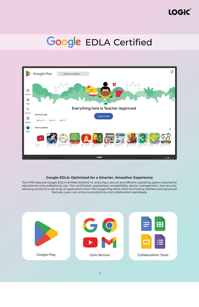 Interactive Display LOGIC- LT-IR86ZX with Android OS, 4K Resolution, 40 Point Infrared Touch, 86 Inch Panel