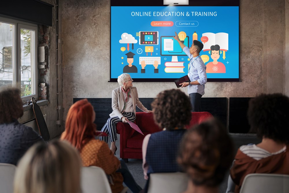 Geared for conference rooms, boardrooms, and other corporate spaces, the AZH430UST features an ultra short throw lens meaning it can project a 100” image from less than 0.5m away, avoiding shadows being cast across the screen from the presenter(s). For ultimate convenience it comes with an RS232 connection for monitoring and controlling and a built-in speaker.
